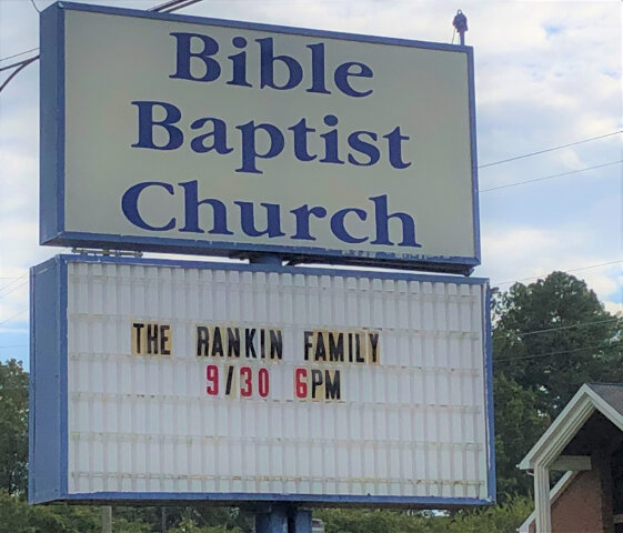 Bible Baptist Church, Pickens, SC October 1, 2018 by admin Thank you for inviting us to sing and play at your church’s Fifth Sunday Night Sing! We thought the quote on your pulpit was cool (picture below)—what a great verse to have on a pulpit! 🙂 Papa with Mark Dibler, the pastor. On the way home!
